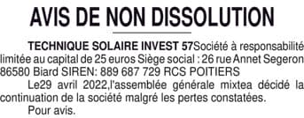 TECHNIQUE SOLAIRE INVEST 57 - Vienne (86)