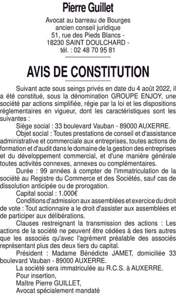 La présentation de votre annonce peut varier selon la composition graphique du journal