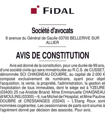 La présentation de votre annonce peut varier selon la composition graphique du journal