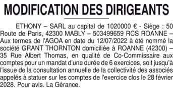 La présentation de votre annonce peut varier selon la composition graphique du journal