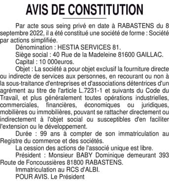 La présentation de votre annonce peut varier selon la composition graphique du journal