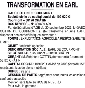 La présentation de votre annonce peut varier selon la composition graphique du journal