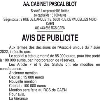 La présentation de votre annonce peut varier selon la composition graphique du journal