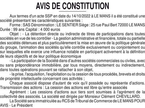 La présentation de votre annonce peut varier selon la composition graphique du journal