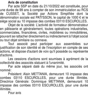La présentation de votre annonce peut varier selon la composition graphique du journal
