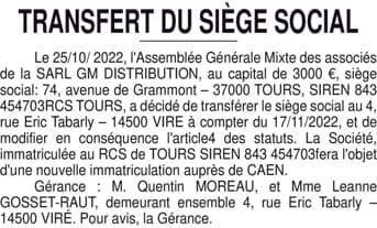 La présentation de votre annonce peut varier selon la composition graphique du journal
