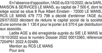 La présentation de votre annonce peut varier selon la composition graphique du journal