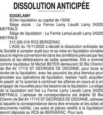 La présentation de votre annonce peut varier selon la composition graphique du journal