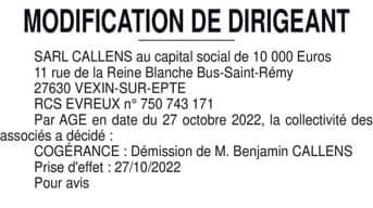 SARL CALLENS Gérance
