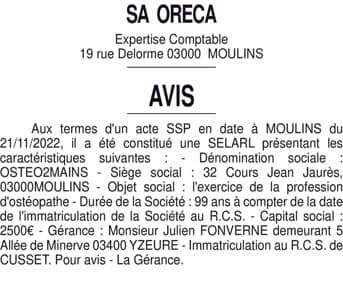 Constit. SELARLU OSTEO2MAINS