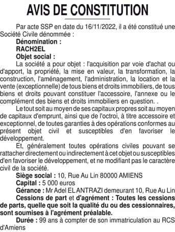 Constitution SCI RACH2EL