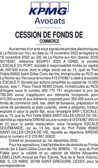 La présentation de votre annonce peut varier selon la composition graphique du journal