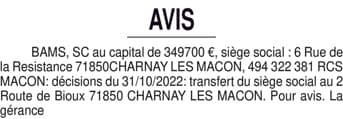 BAMS - transfert de siège