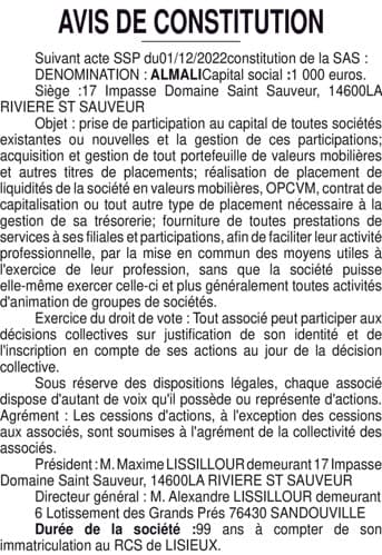La présentation de votre annonce peut varier selon la composition graphique du journal