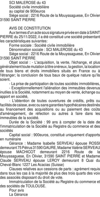 SCI MALEROSE du 43