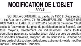 SCI DE LA CORDERIE - Saône et Loire (71)