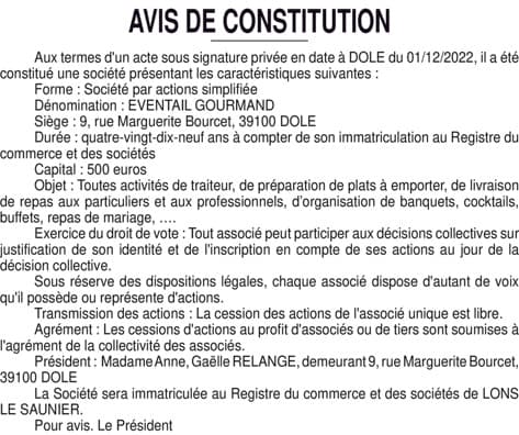 La présentation de votre annonce peut varier selon la composition graphique du journal