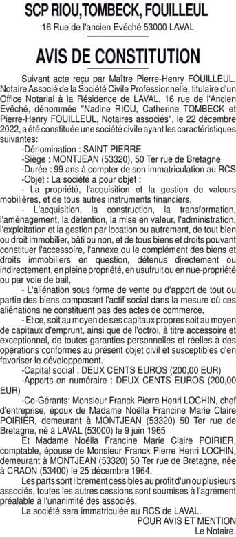 SCP RIOU,TOMBECK, FOUILLEUL - Mayenne (53)