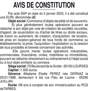 La présentation de votre annonce peut varier selon la composition graphique du journal