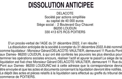 Dissolution DELACOTE