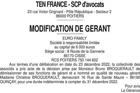 Démission Gérant