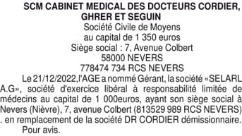 SCM CABINET CORDIER GHRER SEGUIN - Nièvre (58)