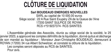 BOUDEAUD ENERGIES NOUVELLES - Charente-maritime (17)