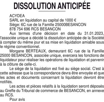 La présentation de votre annonce peut varier selon la composition graphique du journal
