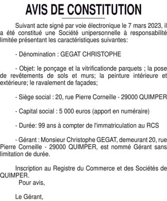 La présentation de votre annonce peut varier selon la composition graphique du journal