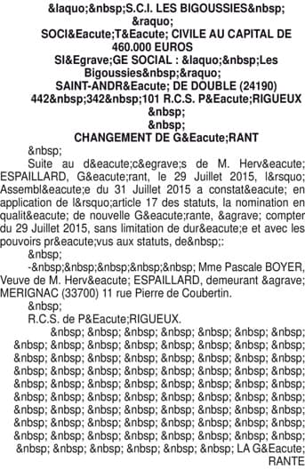 SCI LES BIGOUSSIES