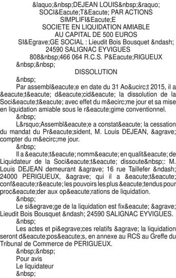 La présentation de votre annonce peut varier selon la composition graphique du journal