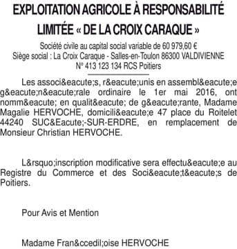 EARL DE LA CROIX CARAQUE - Vienne (86)