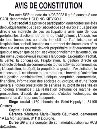 La présentation de votre annonce peut varier selon la composition graphique du journal