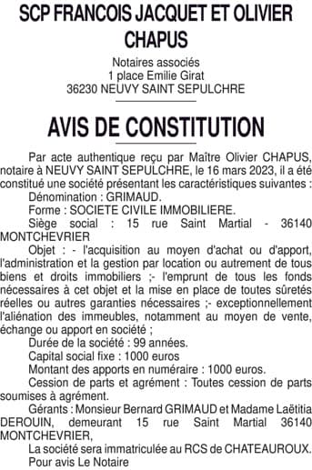 La présentation de votre annonce peut varier selon la composition graphique du journal