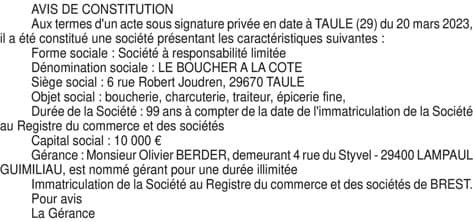 La présentation de votre annonce peut varier selon la composition graphique du journal