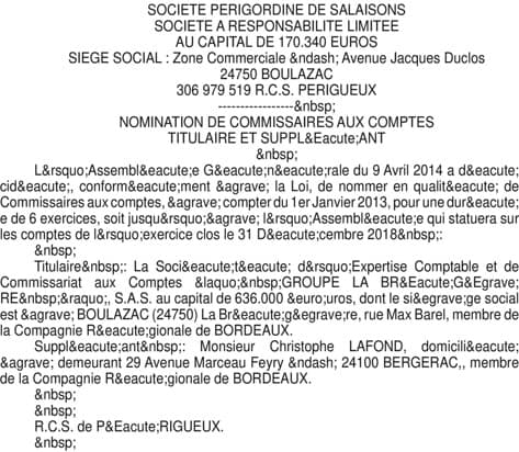 NOMINATION COMMISSAIRES AUX COMP