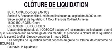 Liquidation ARNALDO DOS SANTOS