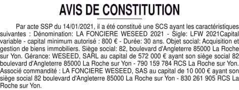 676016 LA FONCIERE WESEED