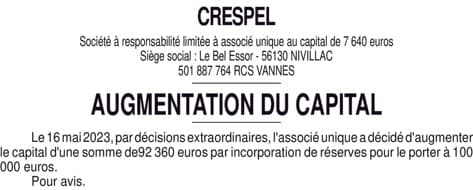 La présentation de votre annonce peut varier selon la composition graphique du journal
