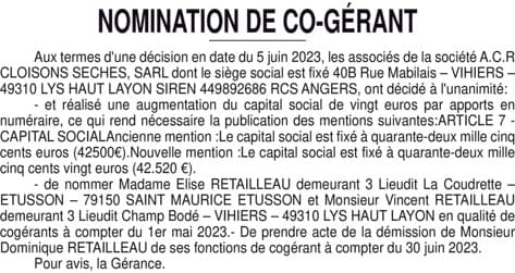A.C.R CLOISONS SECHES gérance