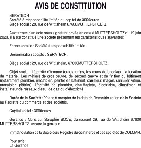 La présentation de votre annonce peut varier selon la composition graphique du journal
