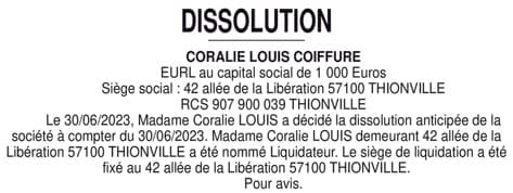 CORALIE LOUIS COIFFURE DISSOLUTION