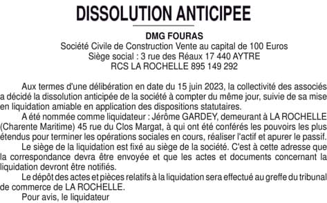 DMG FOURAS - DISSOLUTION