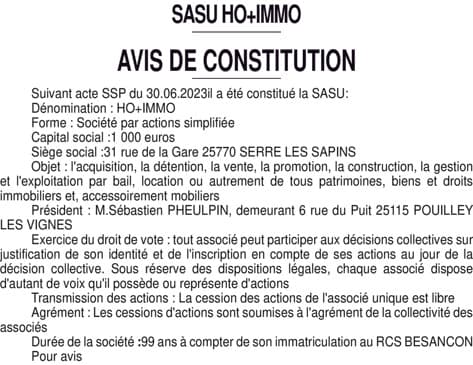 La présentation de votre annonce peut varier selon la composition graphique du journal