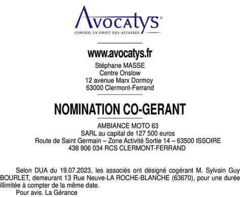 AMBIANCE MOTO 63 - NOMINATION COGERANT