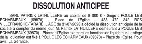 SARL PATRICK LATHUILLERE - Rhône (69)