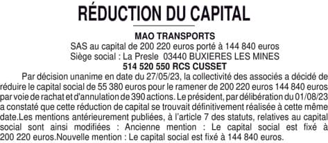 La présentation de votre annonce peut varier selon la composition graphique du journal