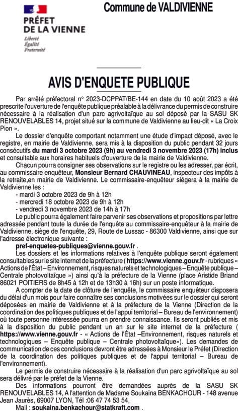 SASU SK RENOUVELABLES 14 - Vienne (86)