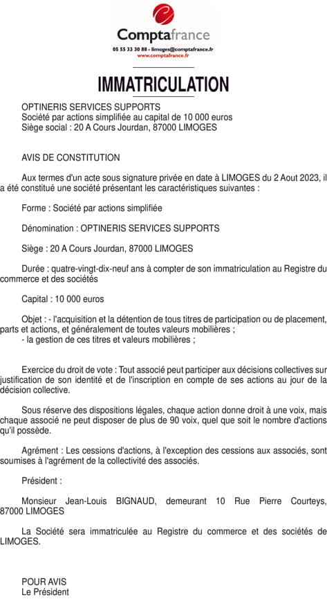 OPTINERIS SERVICES SUPPORTS - Haute-vienne (87)