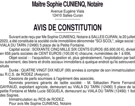 La présentation de votre annonce peut varier selon la composition graphique du journal